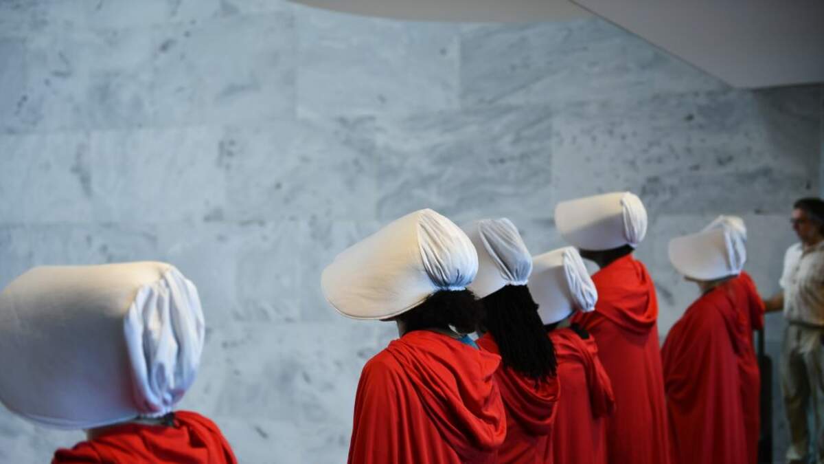 In a teaser that premiered during the Super Bowl, we saw a shot of hundreds of handmaids surrounding the Reflecting Pool.