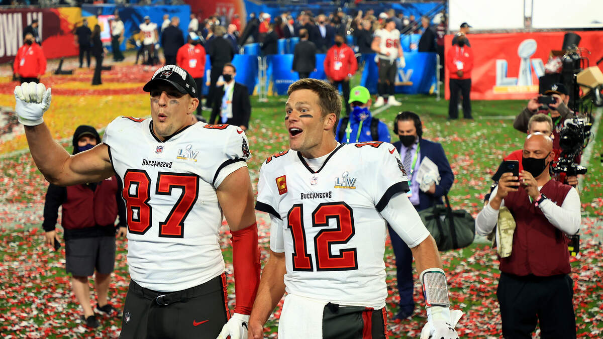Camera crews captured Brady hoist the Lombardi trophy from his boat to Gronk on the boat behind him and the commentators took the words right out of our mouths.