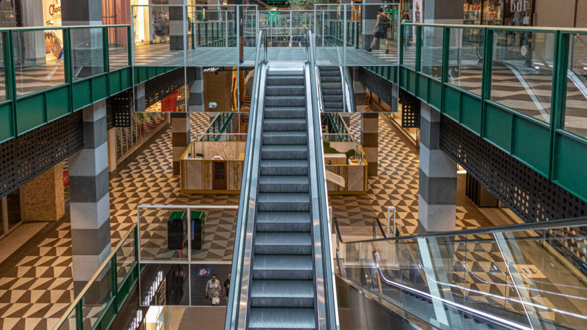 At a mall in Australia a worker decided to take two full bins of trash down an escalator at the same time. He ended up losing control and created a huge mess.